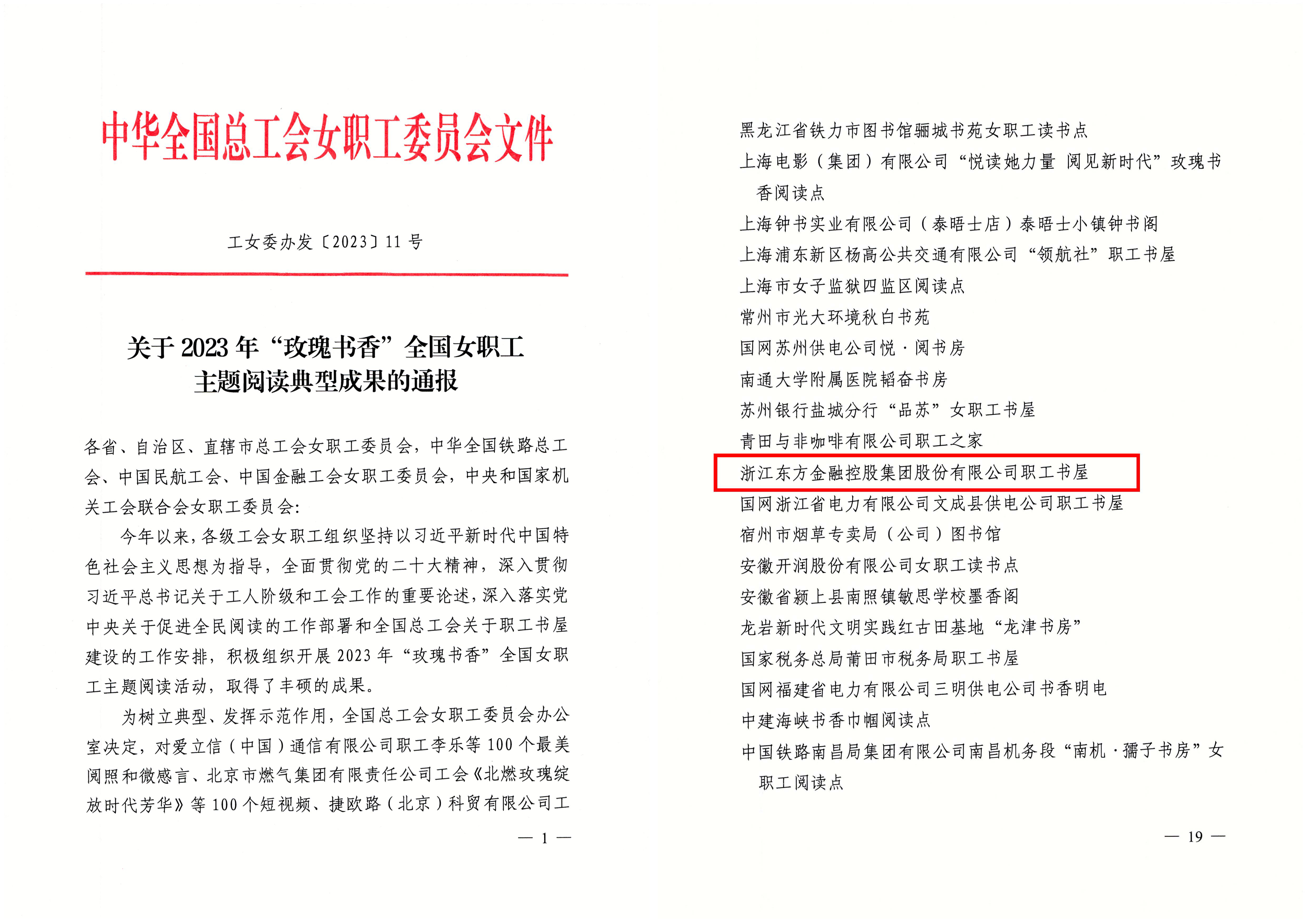 近日,中華全國(guó)總工會(huì)女職工委員會(huì)發(fā)文公布2023年“玫瑰書(shū)香”全國(guó)女職工主題閱讀典型成果名單,浙江東方職工書(shū)屋獲評(píng)全國(guó)一百個(gè)“玫瑰書(shū)香?最美女職工閱讀點(diǎn)”之一。此次評(píng)選是全國(guó)總工會(huì)女職工委員會(huì)為樹(shù)立典型、發(fā)揮示范作用,深入落實(shí)黨中央關(guān)于促進(jìn)全民閱讀工作部署和全國(guó)總工會(huì)關(guān)于職工書(shū)屋建設(shè)工作的重要內(nèi)容。