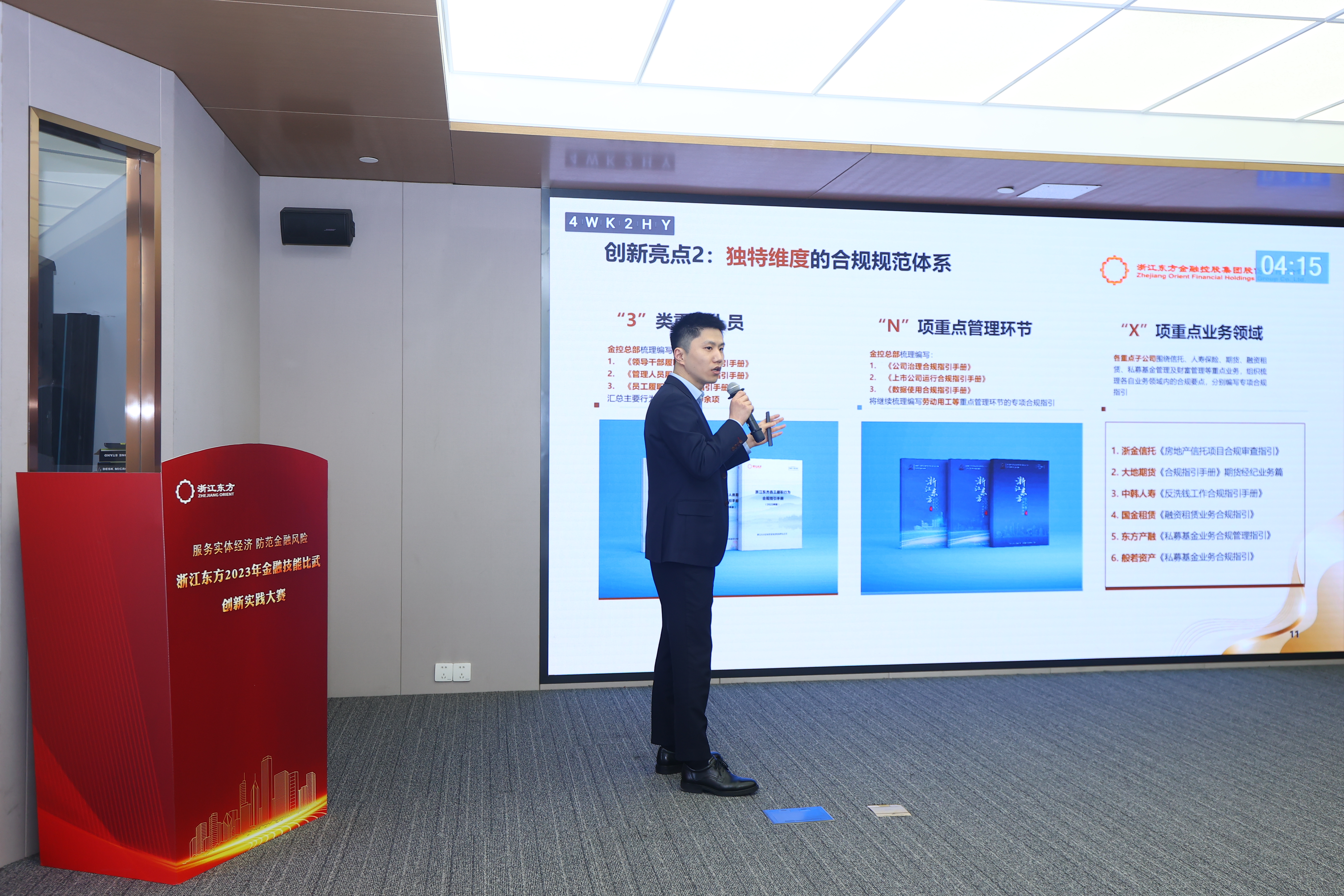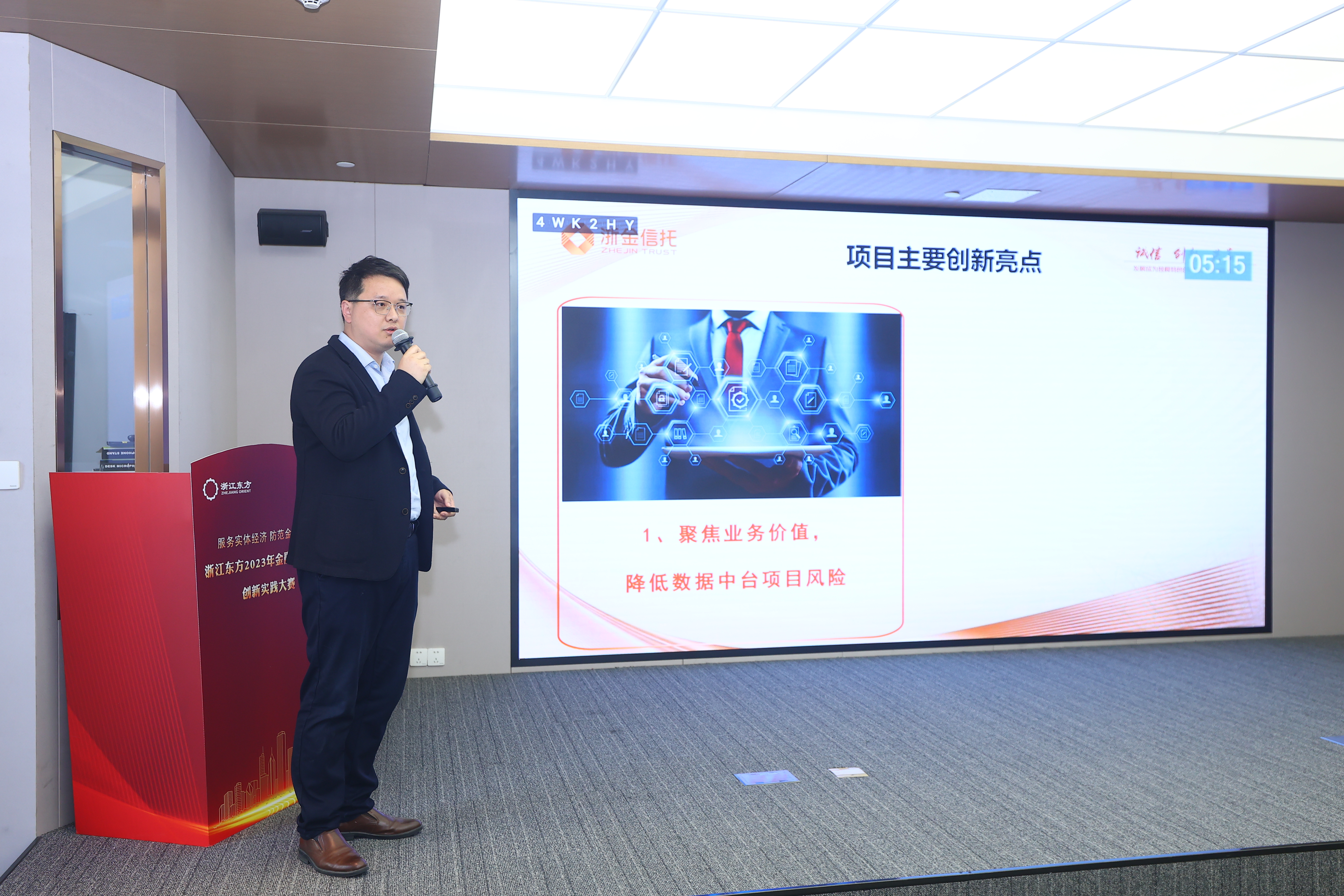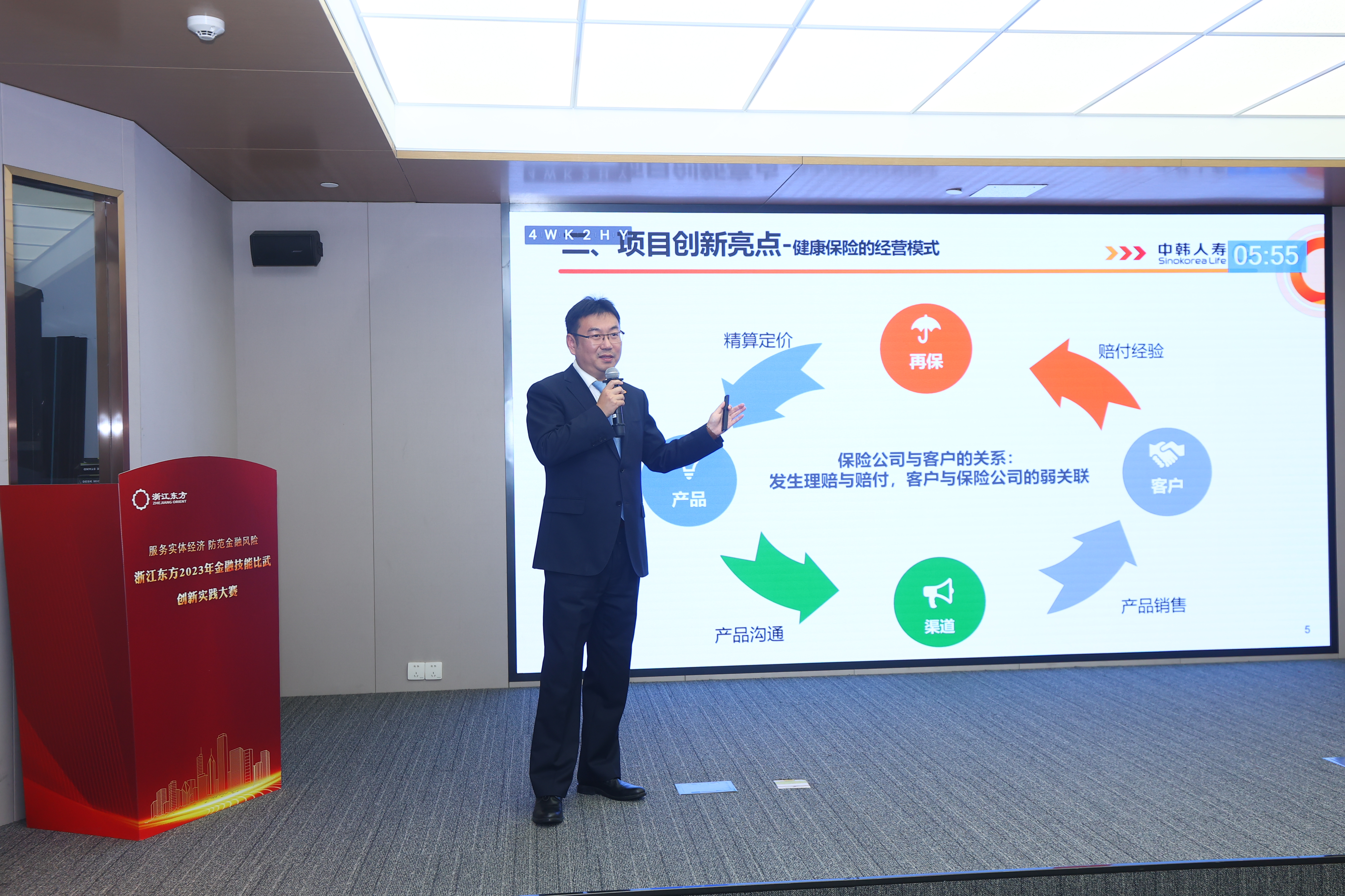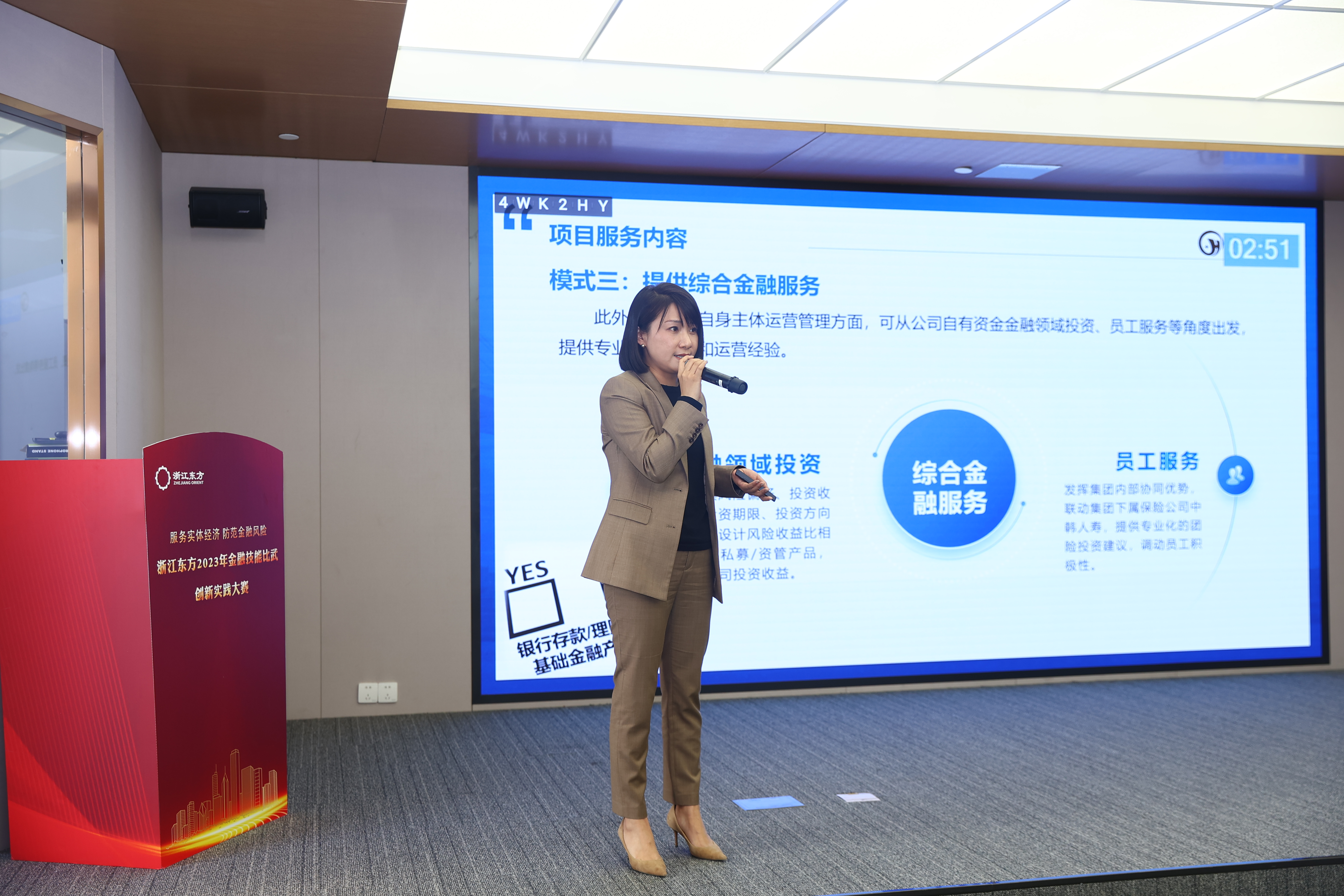 金朝萍在致辭中表示,金融要為經(jīng)濟(jì)社會發(fā)展提供高質(zhì)量服務(wù),做好科技金融、綠色金融、普惠金融、養(yǎng)老金融、數(shù)字金融“五篇大文章”。金融業(yè)要不斷推進(jìn)產(chǎn)品創(chuàng)新、模式創(chuàng)新、管理創(chuàng)新等。今天決賽的七個項目,深耕業(yè)務(wù)創(chuàng)新、數(shù)字賦能、管理提升等領(lǐng)域,展現(xiàn)了服務(wù)實體經(jīng)濟(jì)和社會民生、金控集團(tuán)能力體系建設(shè)、管理創(chuàng)新和金融服務(wù)保障能力等方面的積極探索與大膽實踐。金朝萍對全體員工在提升公司發(fā)展能級和提升金融服務(wù)實體經(jīng)濟(jì)質(zhì)效方面,提出三點要求。一是找準(zhǔn)定位,進(jìn)一步明確創(chuàng)新的方向。要明晰創(chuàng)新目的、強(qiáng)化問題意識、堅持依法合規(guī)。二是放大格局,進(jìn)一步開拓創(chuàng)新的路徑。要主動融入中心服務(wù)大局,深入挖掘各板塊之間的協(xié)同創(chuàng)新空間,縱深推進(jìn)數(shù)字化改革,強(qiáng)化金融風(fēng)險管控,推動金控平臺穩(wěn)健發(fā)展。三是精耕細(xì)作,進(jìn)一步厚植創(chuàng)新的沃土。要積極營造崇尚創(chuàng)新的文化環(huán)境,持續(xù)完善創(chuàng)新制度體系,用好用活創(chuàng)新人才,激勵干部員工改革創(chuàng)新和擔(dān)當(dāng)作為。